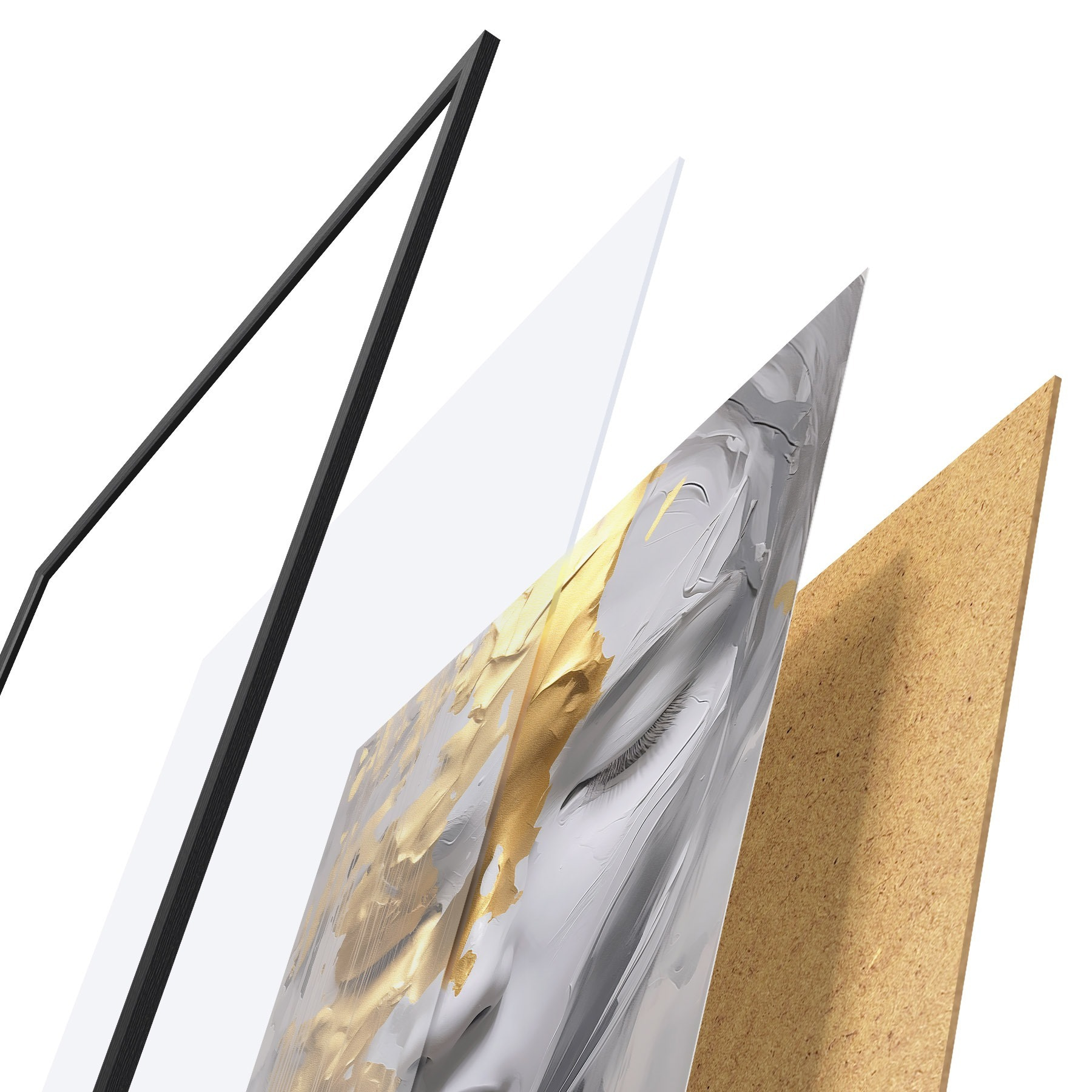 El póster consta de marco, plexiglás, imagen impresa y soporte de aglomerado. El póster puede colgarse inmediatamente en la pared gracias a los soportes de la parte posterior.
