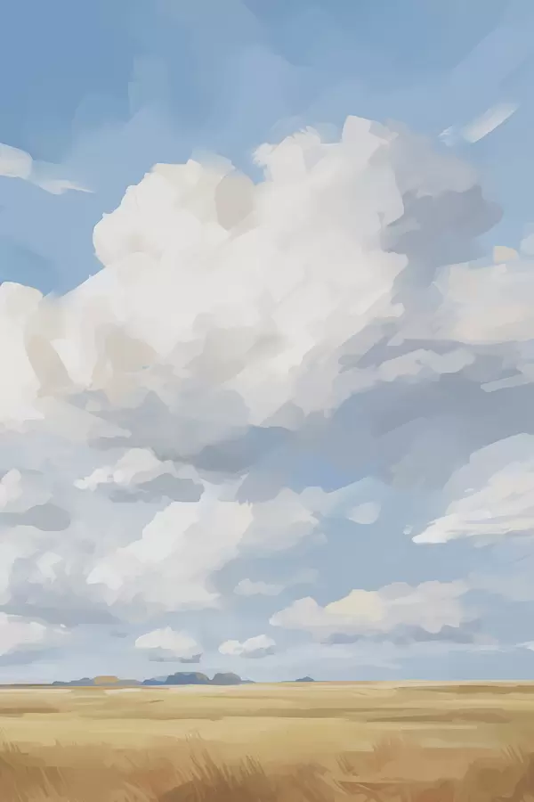 Poster Campo de trigo contra el cielo con enormes nubes Nr f45454