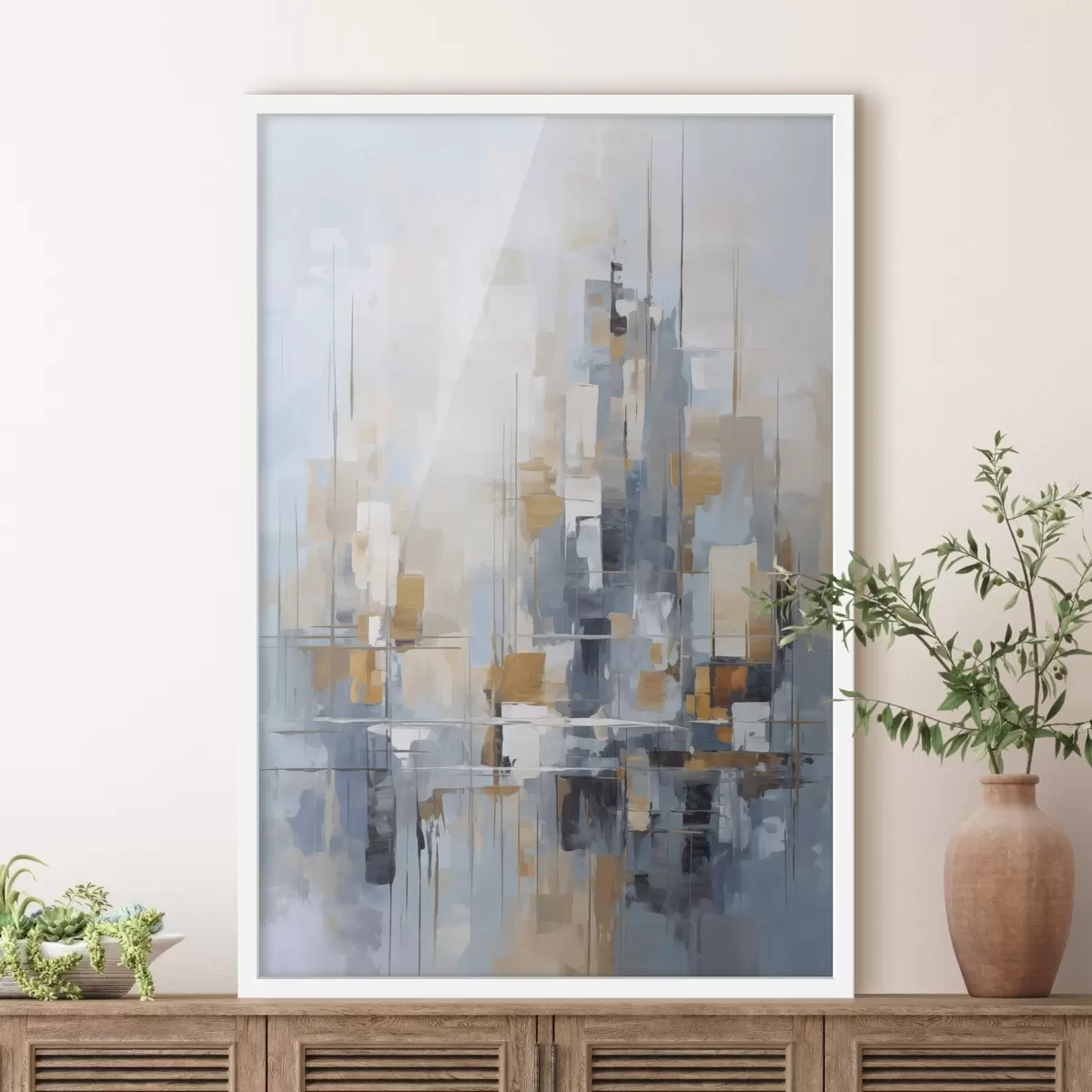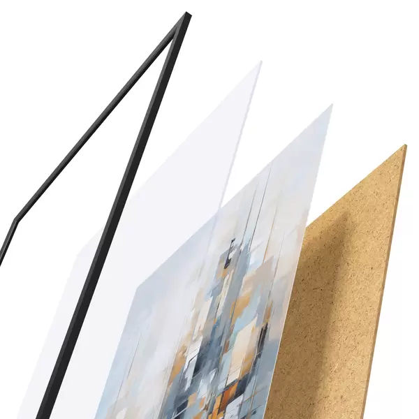 El póster consta de marco, plexiglás, imagen impresa y soporte de aglomerado. El póster puede colgarse inmediatamente en la pared gracias a los soportes de la parte posterior.