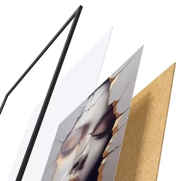 El póster consta de marco, plexiglás, imagen impresa y soporte de aglomerado. El póster puede colgarse inmediatamente en la pared gracias a los soportes de la parte posterior.