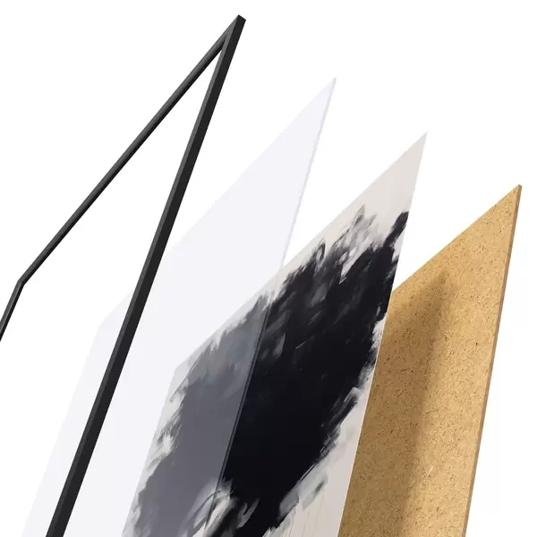 El póster consta de marco, plexiglás, imagen impresa y soporte de aglomerado. El póster puede colgarse inmediatamente en la pared gracias a los soportes de la parte posterior.