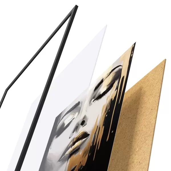 El póster consta de marco, plexiglás, imagen impresa y soporte de aglomerado. El póster puede colgarse inmediatamente en la pared gracias a los soportes de la parte posterior.