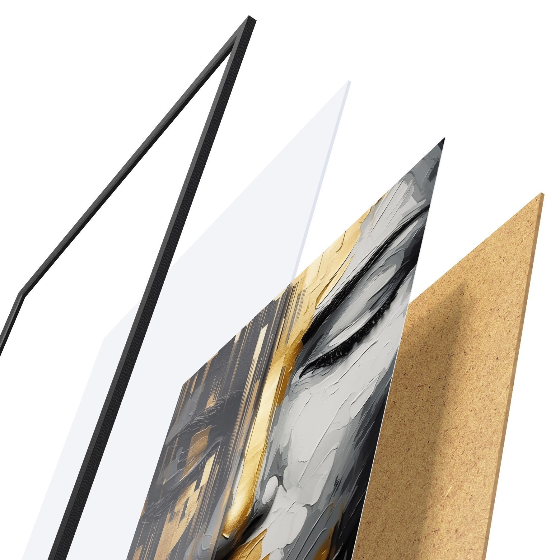 El póster consta de marco, plexiglás, imagen impresa y soporte de aglomerado. El póster puede colgarse inmediatamente en la pared gracias a los soportes de la parte posterior.