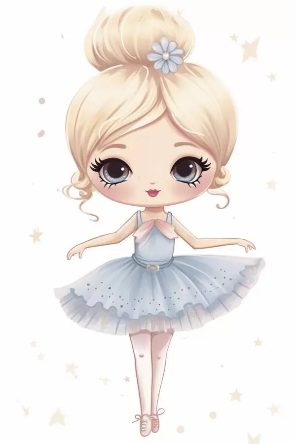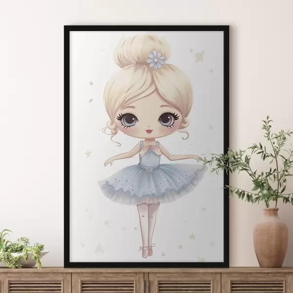 Poster Muñeca bailarina con vestido azul y lazo f45481