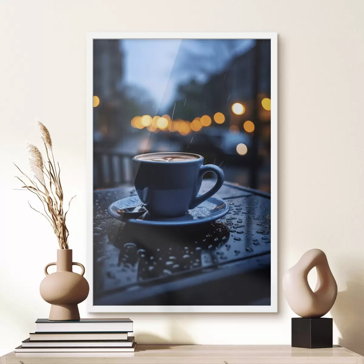 El póster consta de marco, plexiglás, imagen impresa y soporte de aglomerado. El póster puede colgarse inmediatamente en la pared gracias a los soportes de la parte posterior.