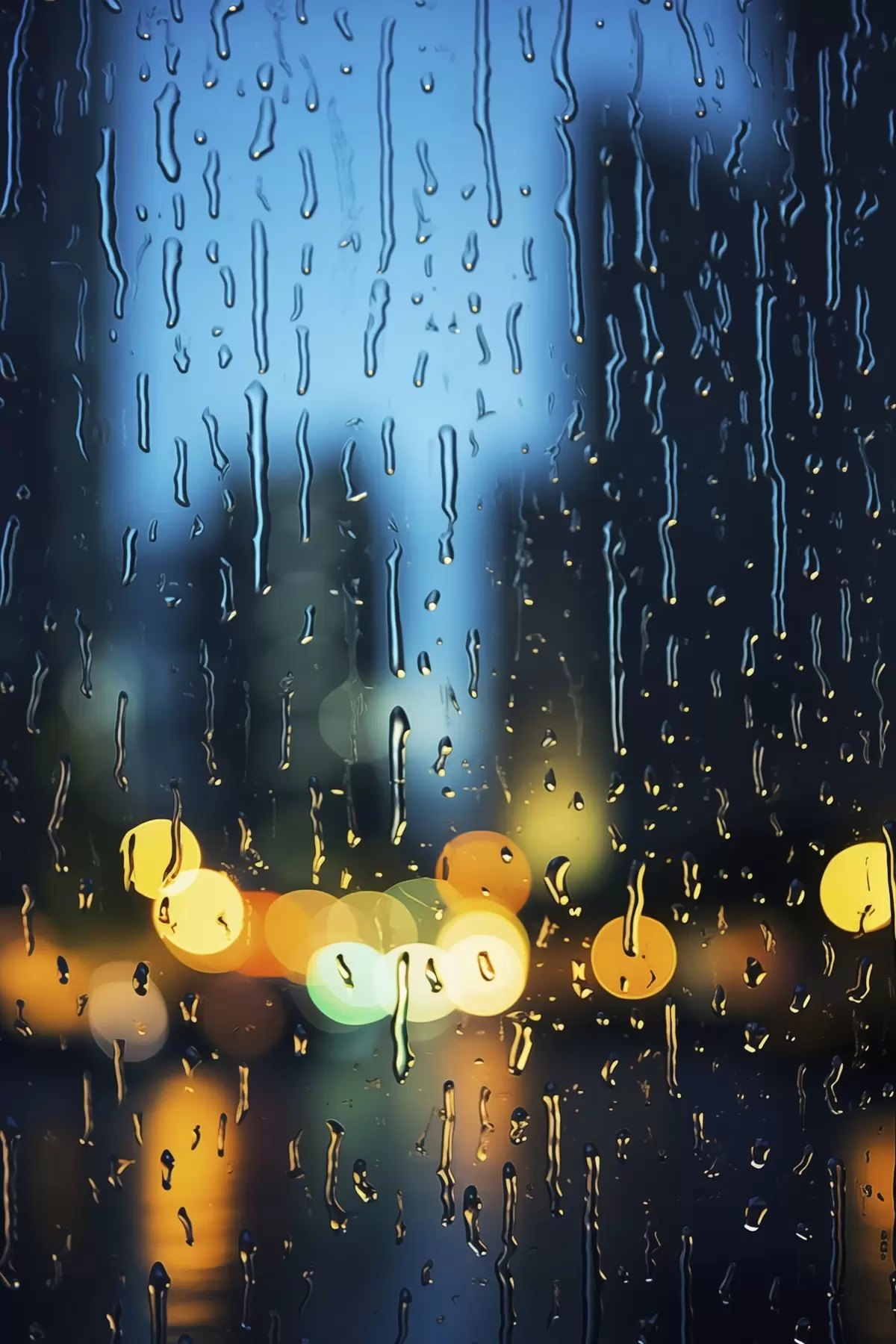 Poster Taza de café sobre una mesa bajo la lluvia f45500