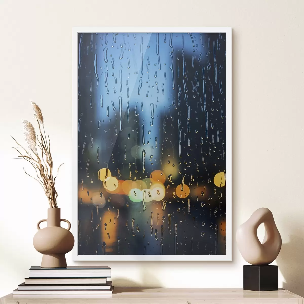 Poster Taza de café sobre una mesa bajo la lluvia Nr f45500