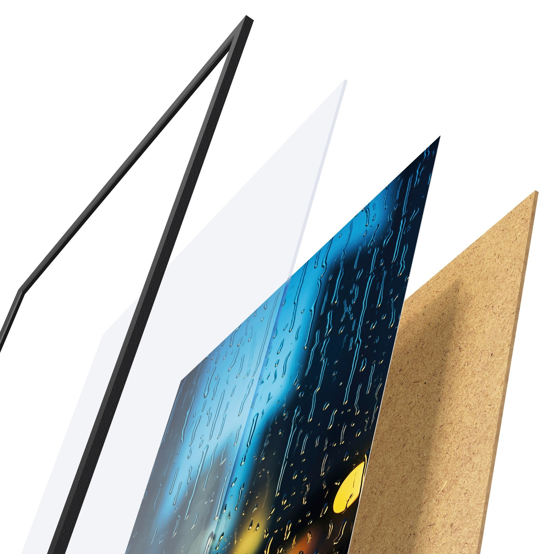 El póster consta de marco, plexiglás, imagen impresa y soporte de aglomerado. El póster puede colgarse inmediatamente en la pared gracias a los soportes de la parte posterior.