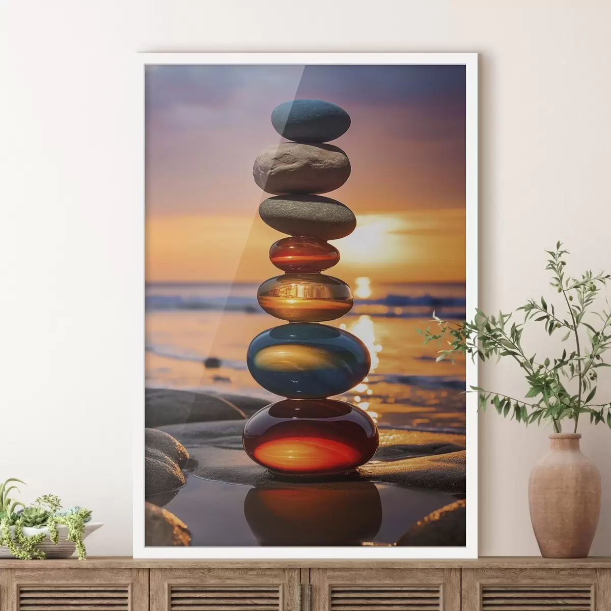 Poster Piedras apiladas con la puesta de sol como telón de fondo f45520
