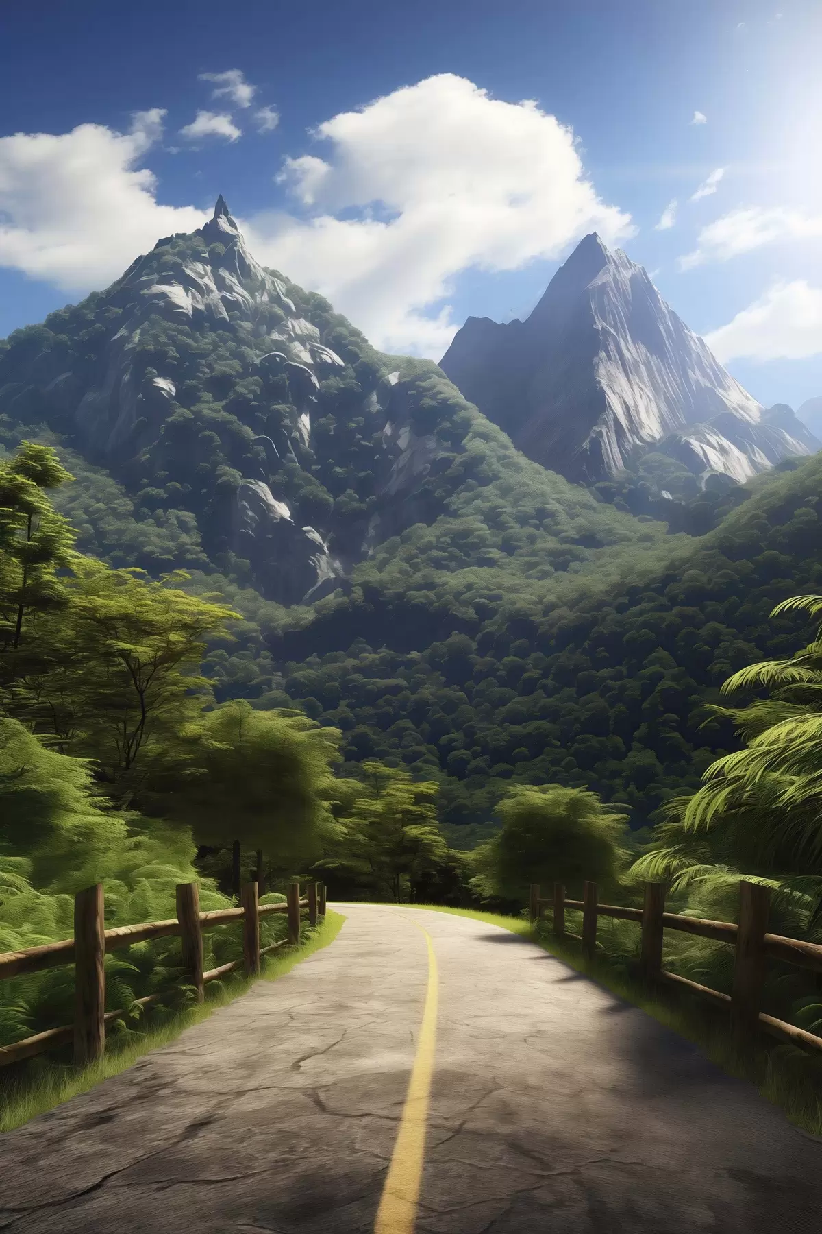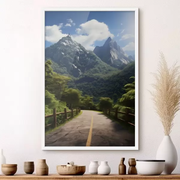 Poster Carretera de montaña entre árboles verdes Nr f45525