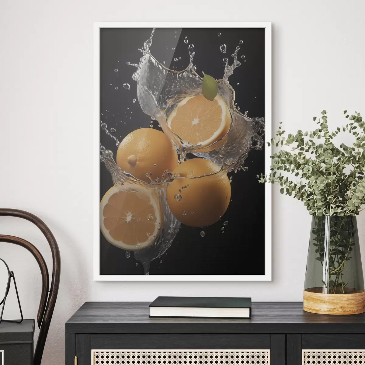 Poster Naranjas jugosas en salpicaduras de agua Nr f45526