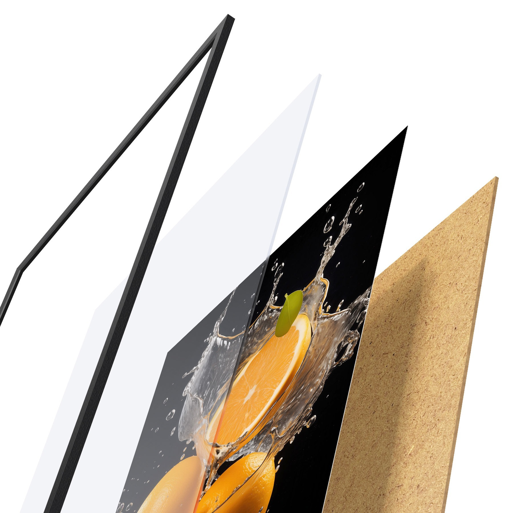 El póster consta de marco, plexiglás, imagen impresa y soporte de aglomerado. El póster puede colgarse inmediatamente en la pared gracias a los soportes de la parte posterior.