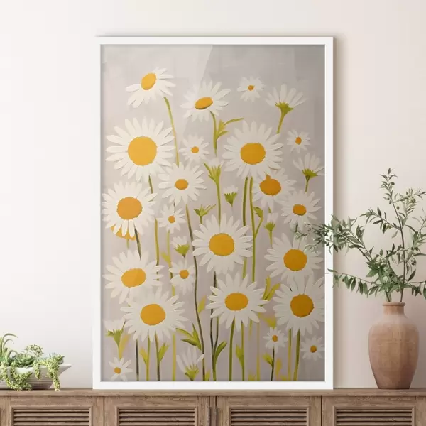Poster Flores silvestres: composición de margaritas sobre fondo claro f45528