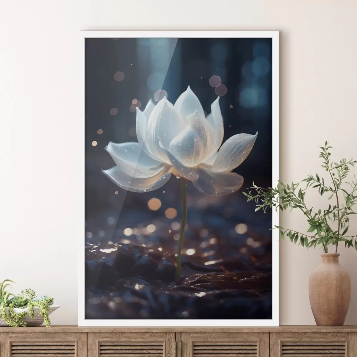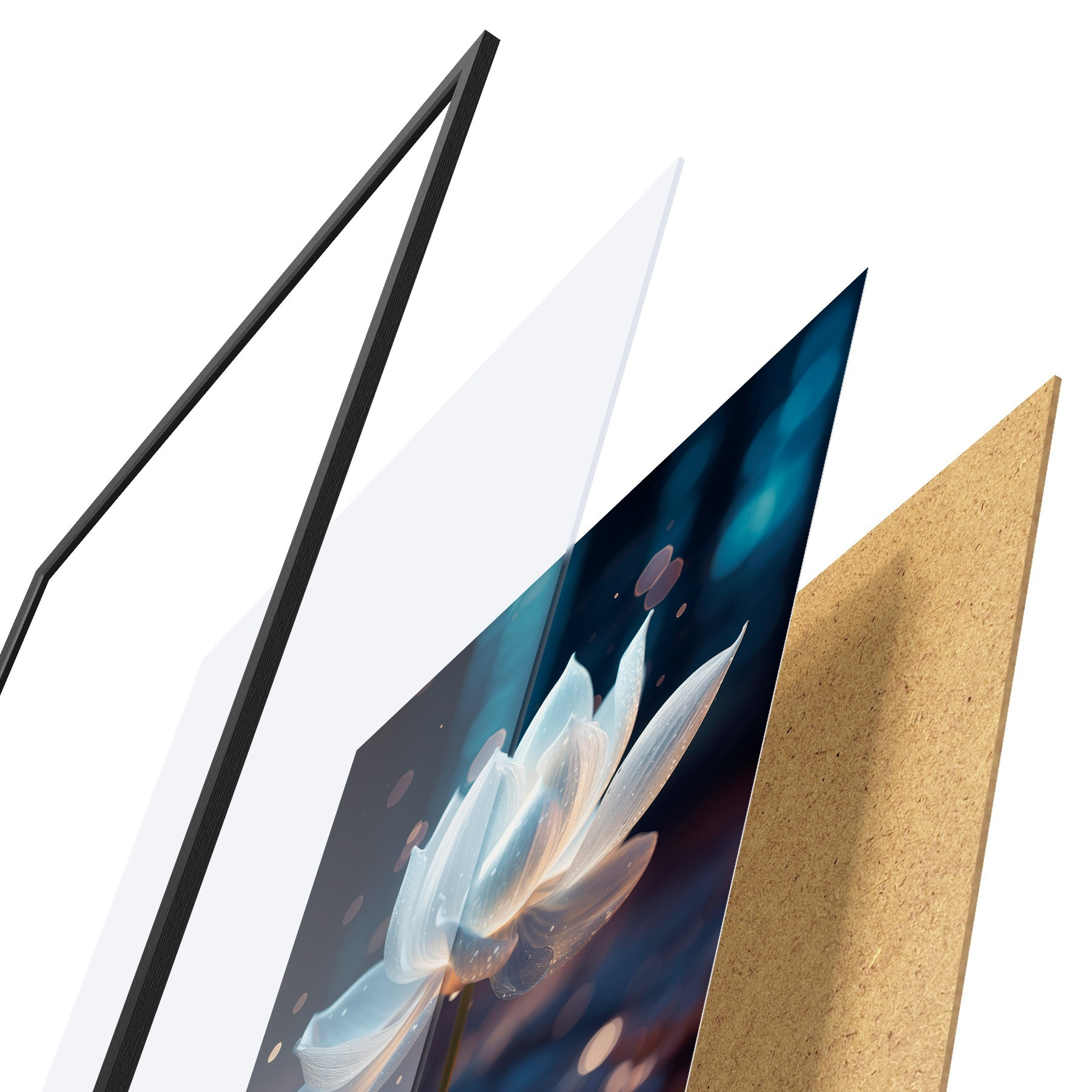 El póster consta de marco, plexiglás, imagen impresa y soporte de aglomerado. El póster puede colgarse inmediatamente en la pared gracias a los soportes de la parte posterior.