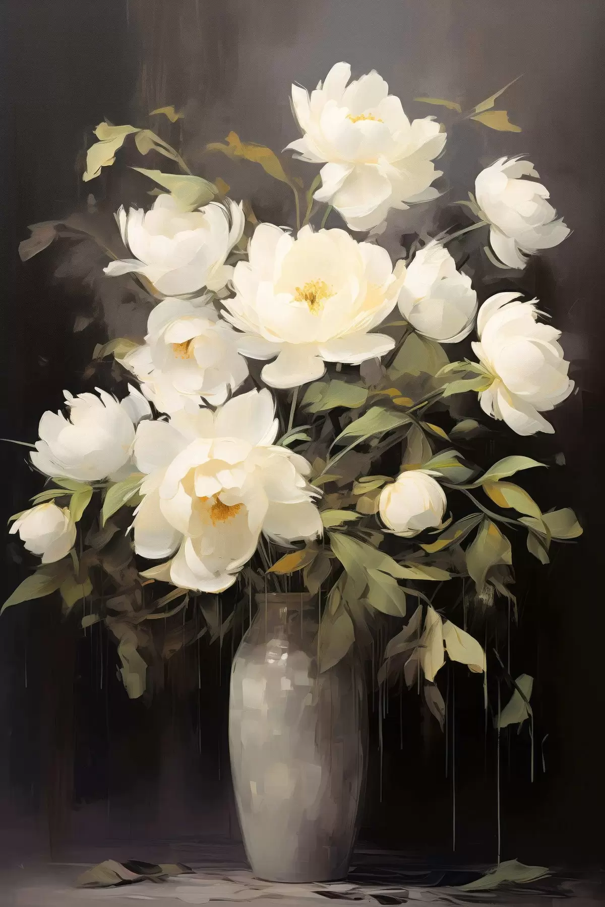 Poster Delicadas peonías en un jarrón: composición floral al estilo de la pintura f45532