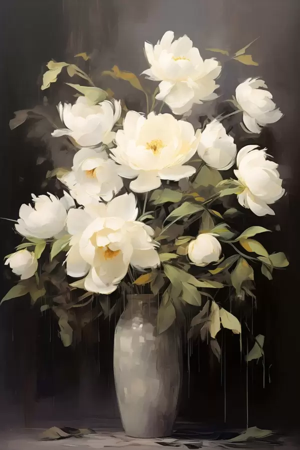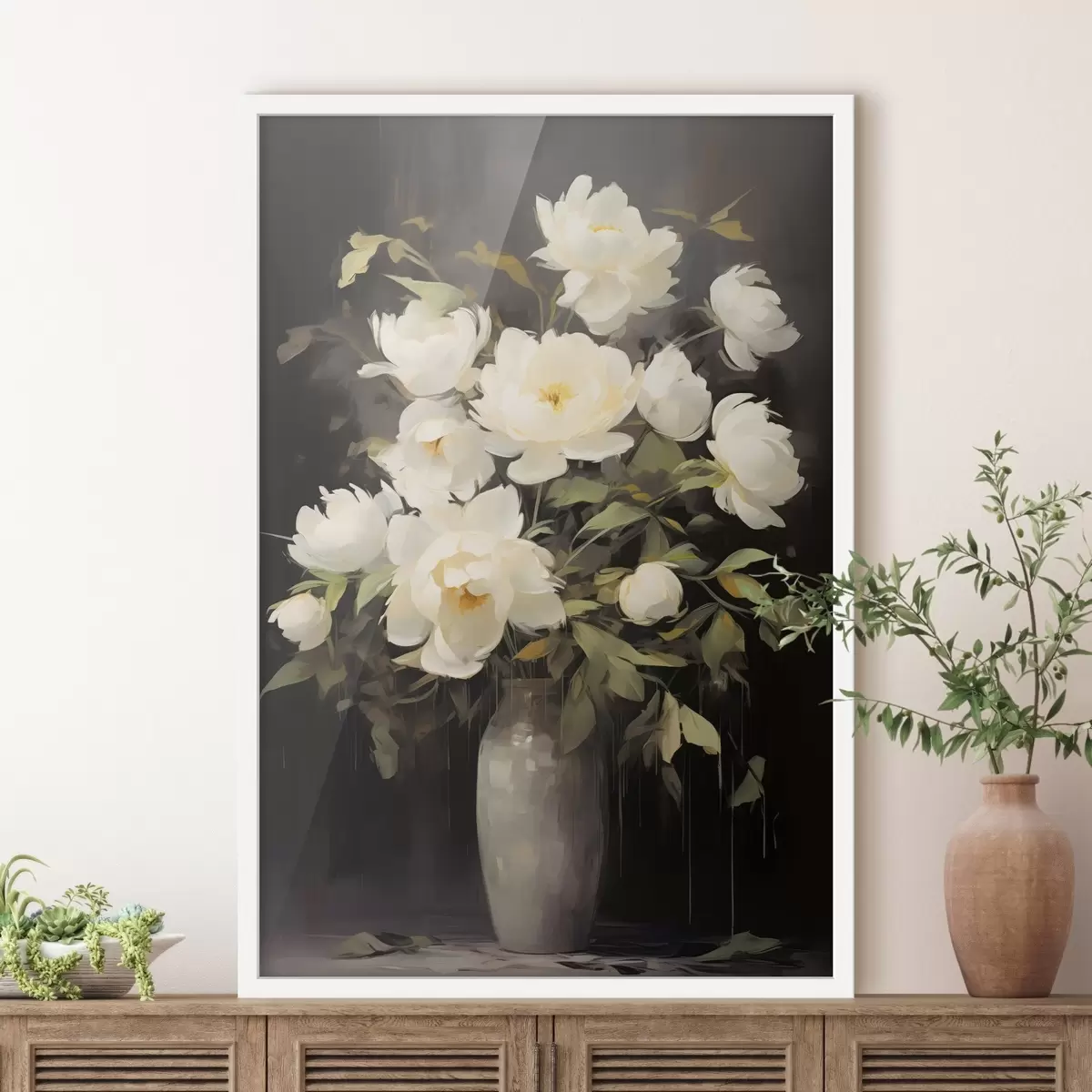 Poster Delicadas peonías en un jarrón: composición floral al estilo de la pintura Nr f45532