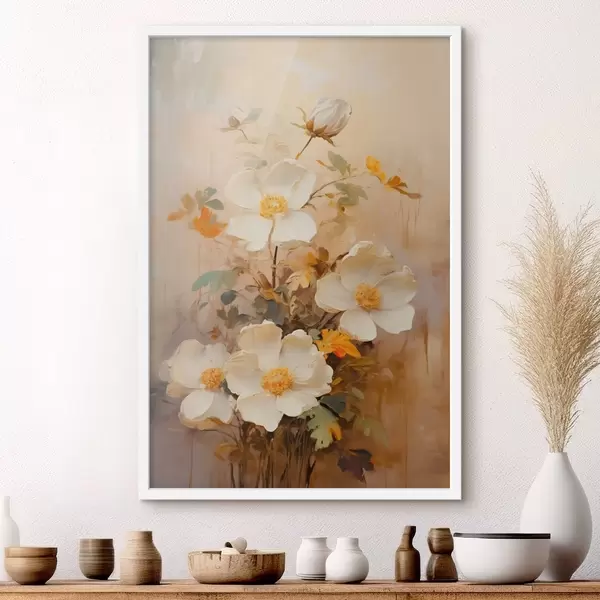 Poster Flores blancas: composición pictórica en tonos pastel f45533