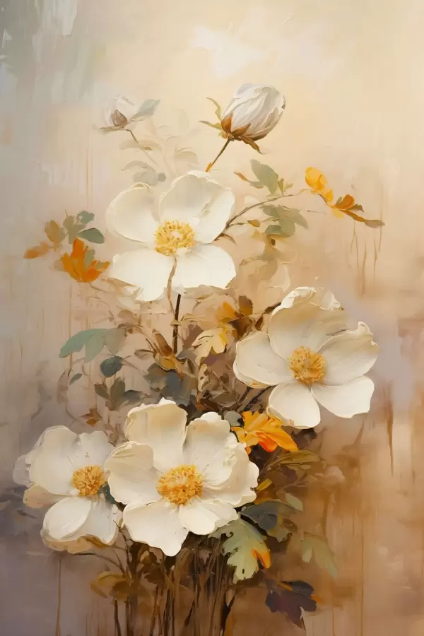 Poster Flores blancas: composición pictórica en tonos pastel f45533