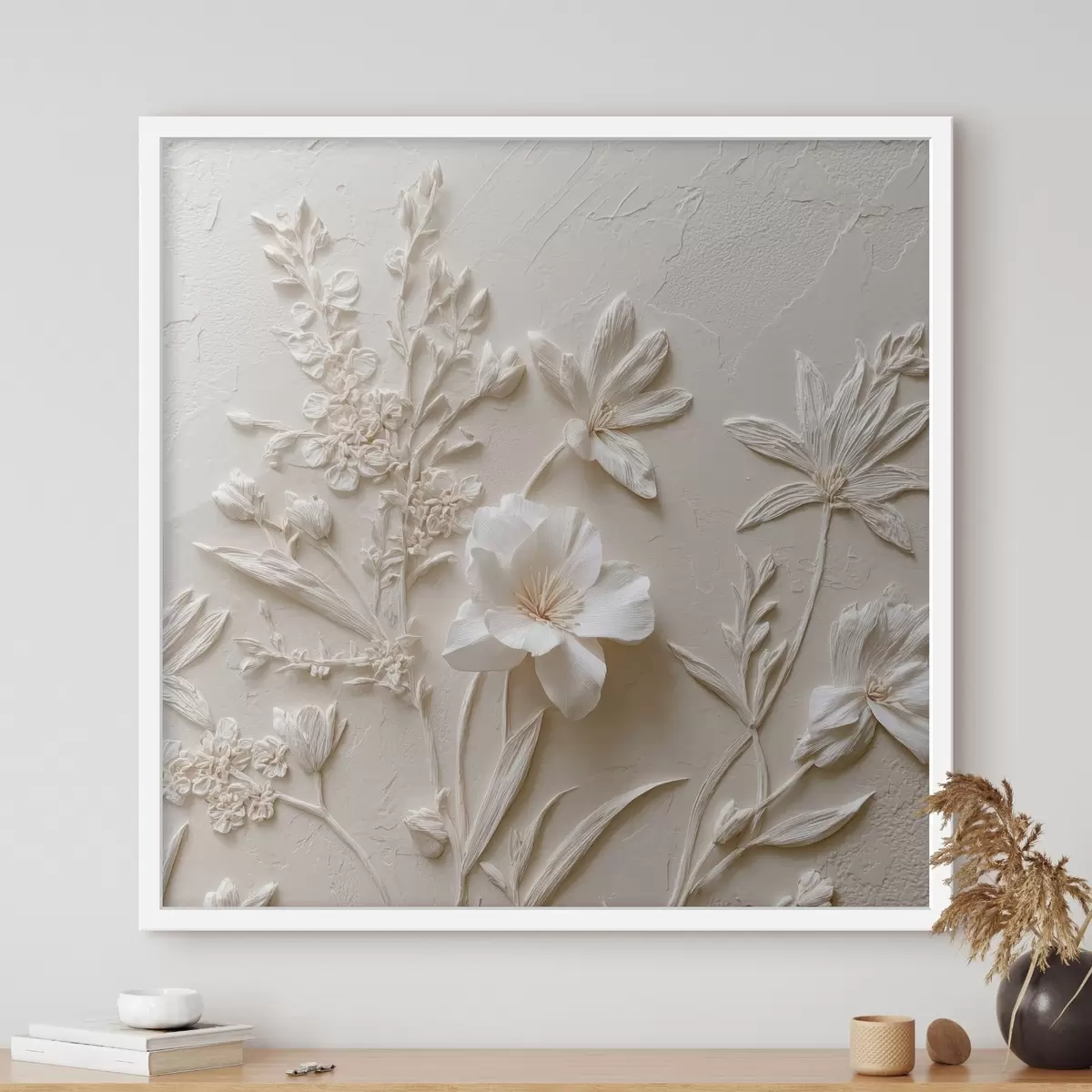 Poster Motivo floral: estilo bajorrelieve con plantas sobre fondo claro Nr f45536