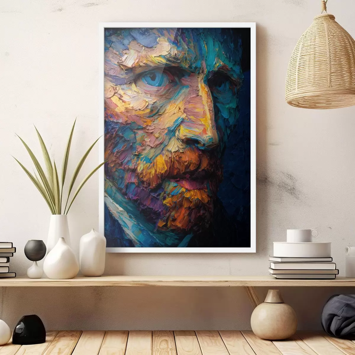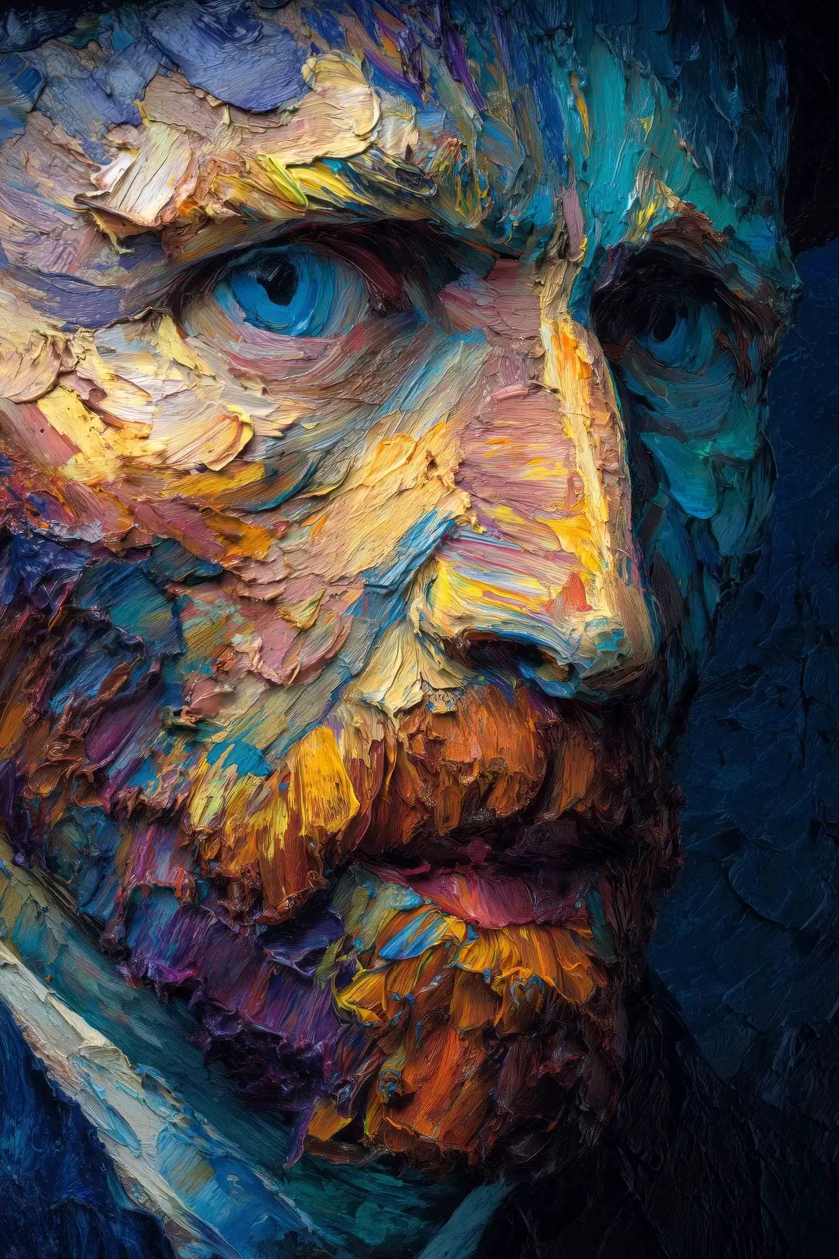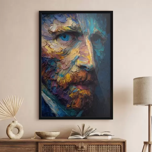 Poster Retrato decorativo de Van Gogh: pintura en relieve en tonos azules y naranjas Nr f45546