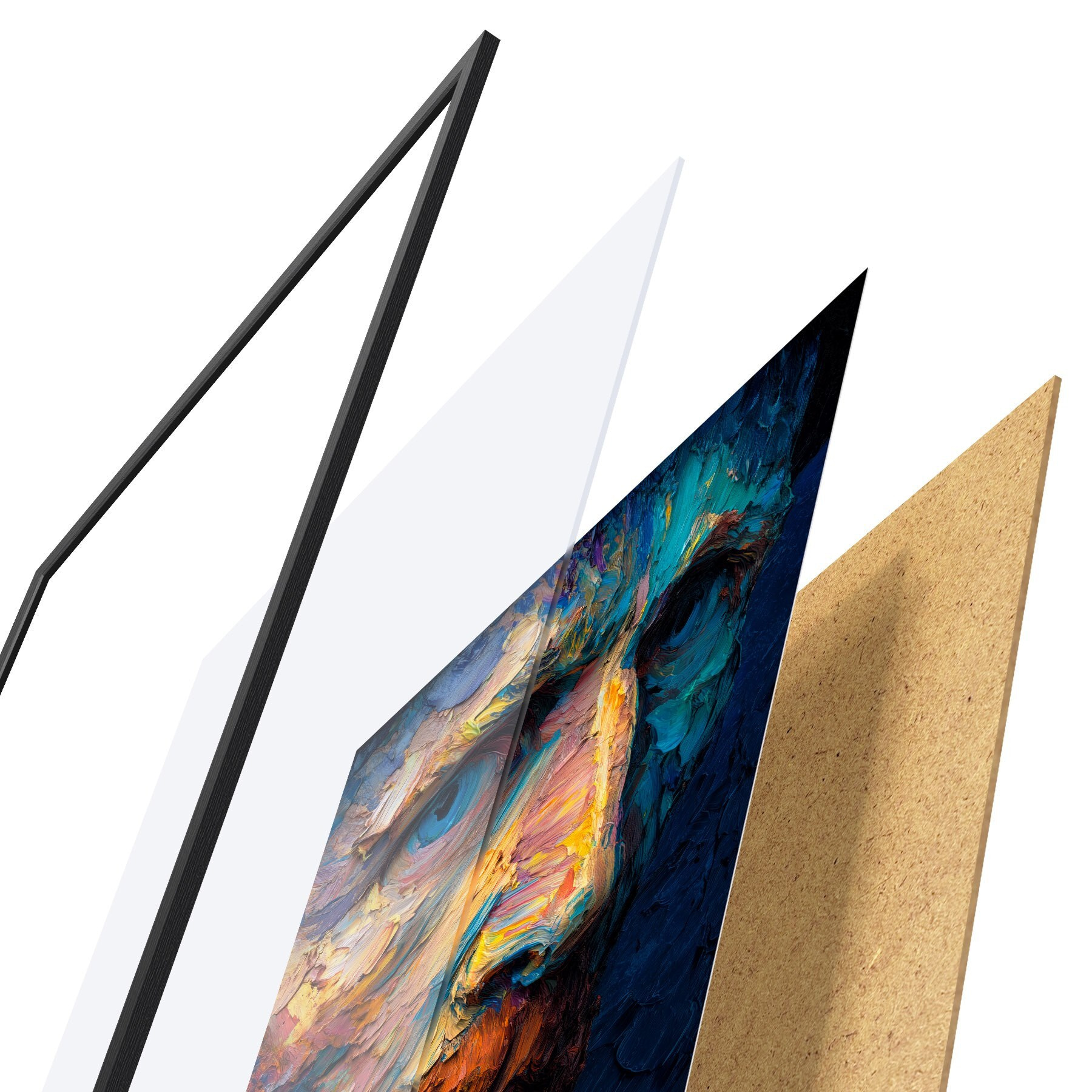 Vendemos cuadros en bastidor: se trata de un marco de madera sobre el que se extiende el lienzo. Este cuadro no necesita marco; puedes colgarlo directamente en la pared.