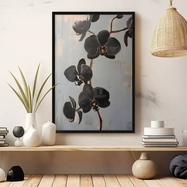 Poster Orquídeas decorativas: flores negras sobre fondo gris Nr f45547