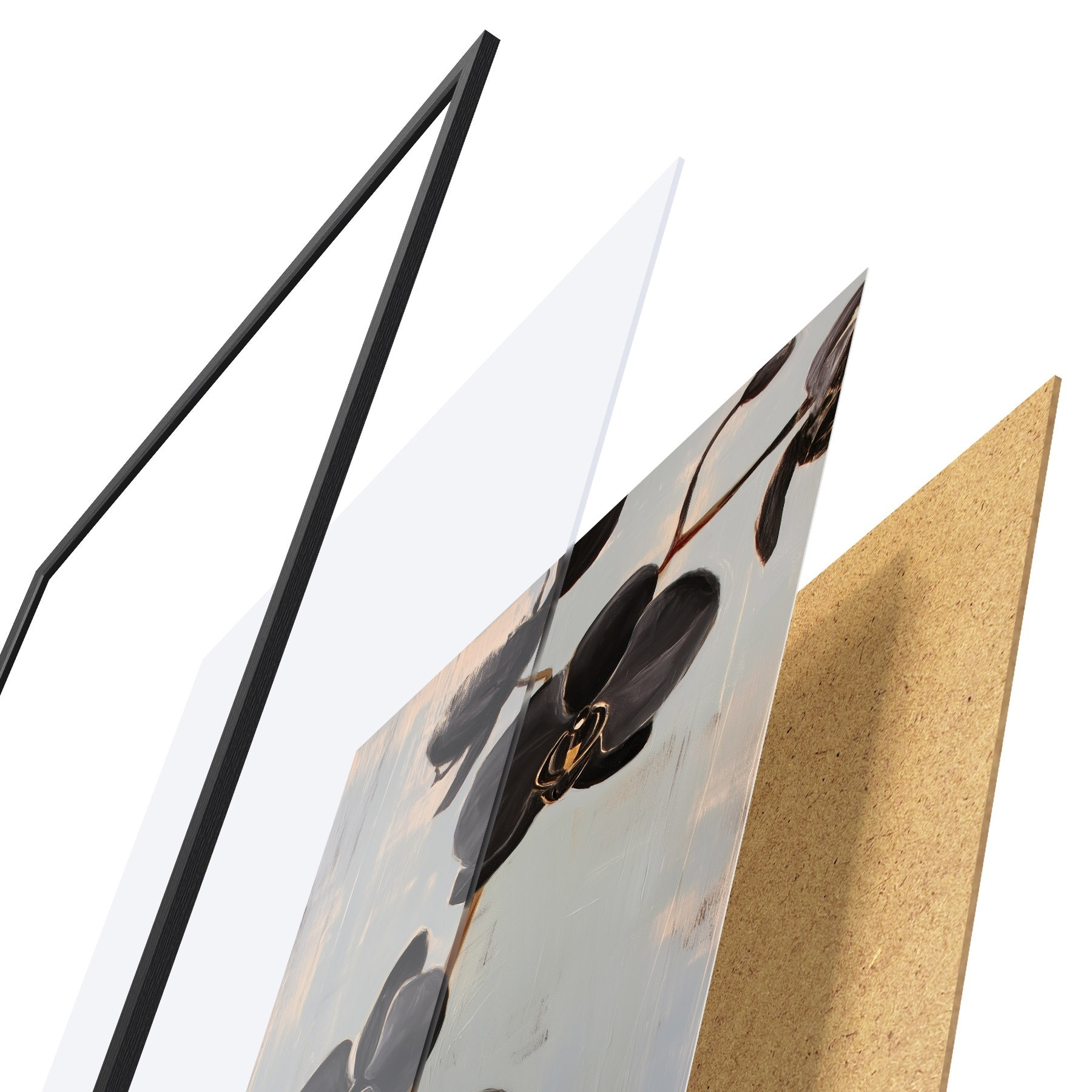 El póster consta de marco, plexiglás, imagen impresa y soporte de aglomerado. El póster puede colgarse inmediatamente en la pared gracias a los soportes de la parte posterior.