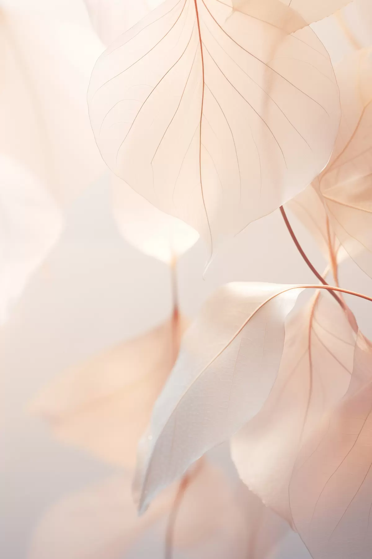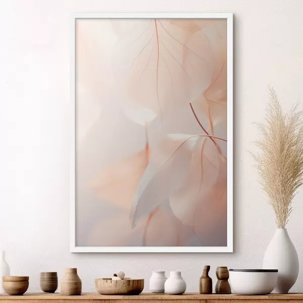 Poster Primer plano de hojas translúcidas con delicadas venas, suave paleta de colores melocotón y blanco, fondo difuminado Nr f45556