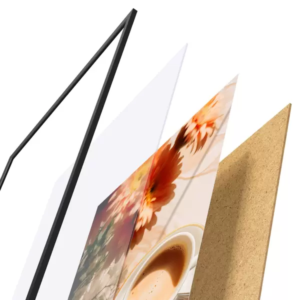 El póster consta de marco, plexiglás, imagen impresa y soporte de aglomerado. El póster puede colgarse inmediatamente en la pared gracias a los soportes de la parte posterior.