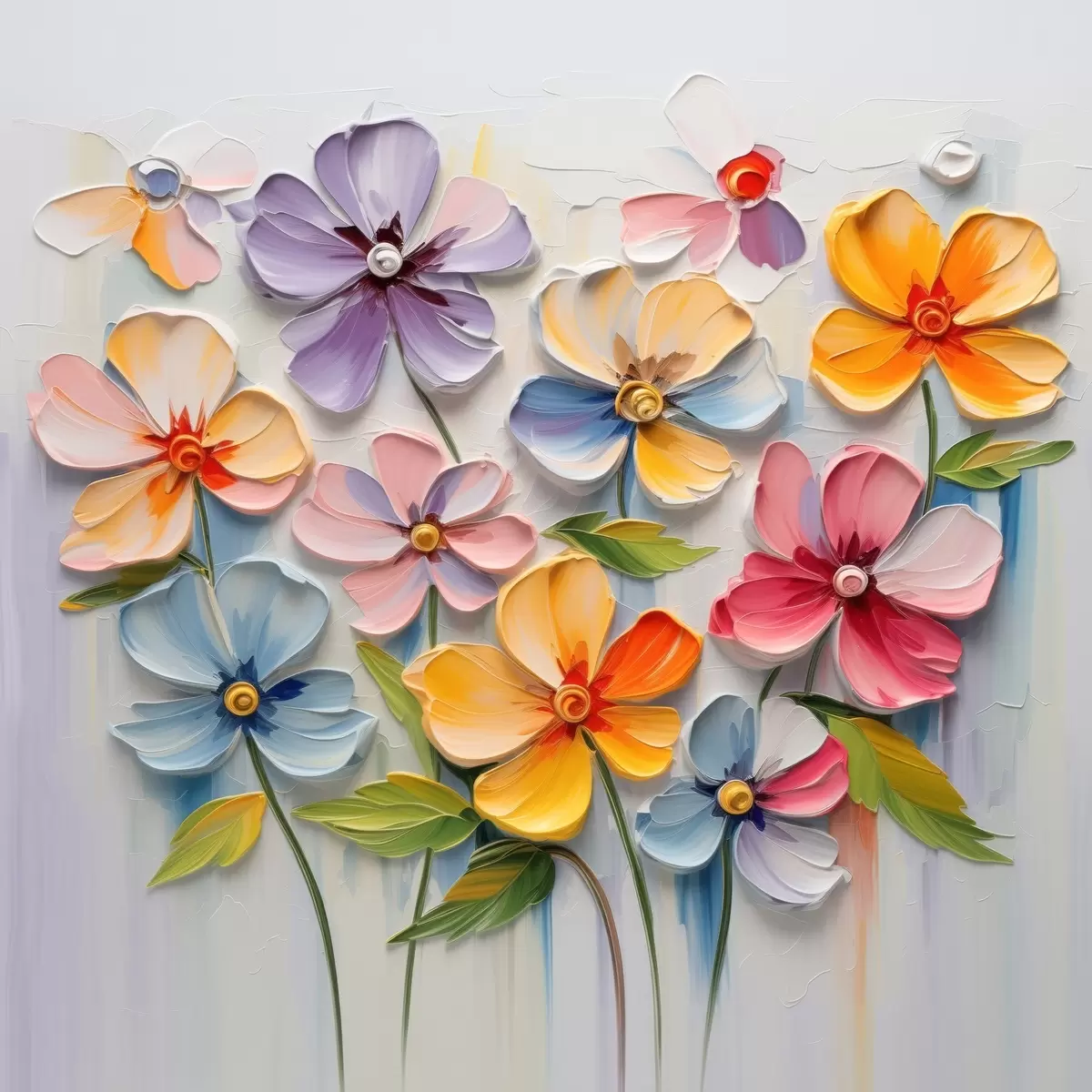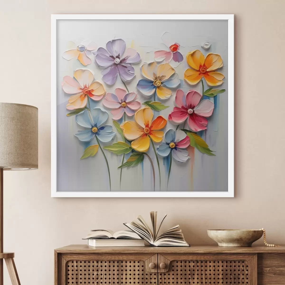 Poster Naturaleza muerta floral: flores multicolores en técnica de empaste Nr f45598