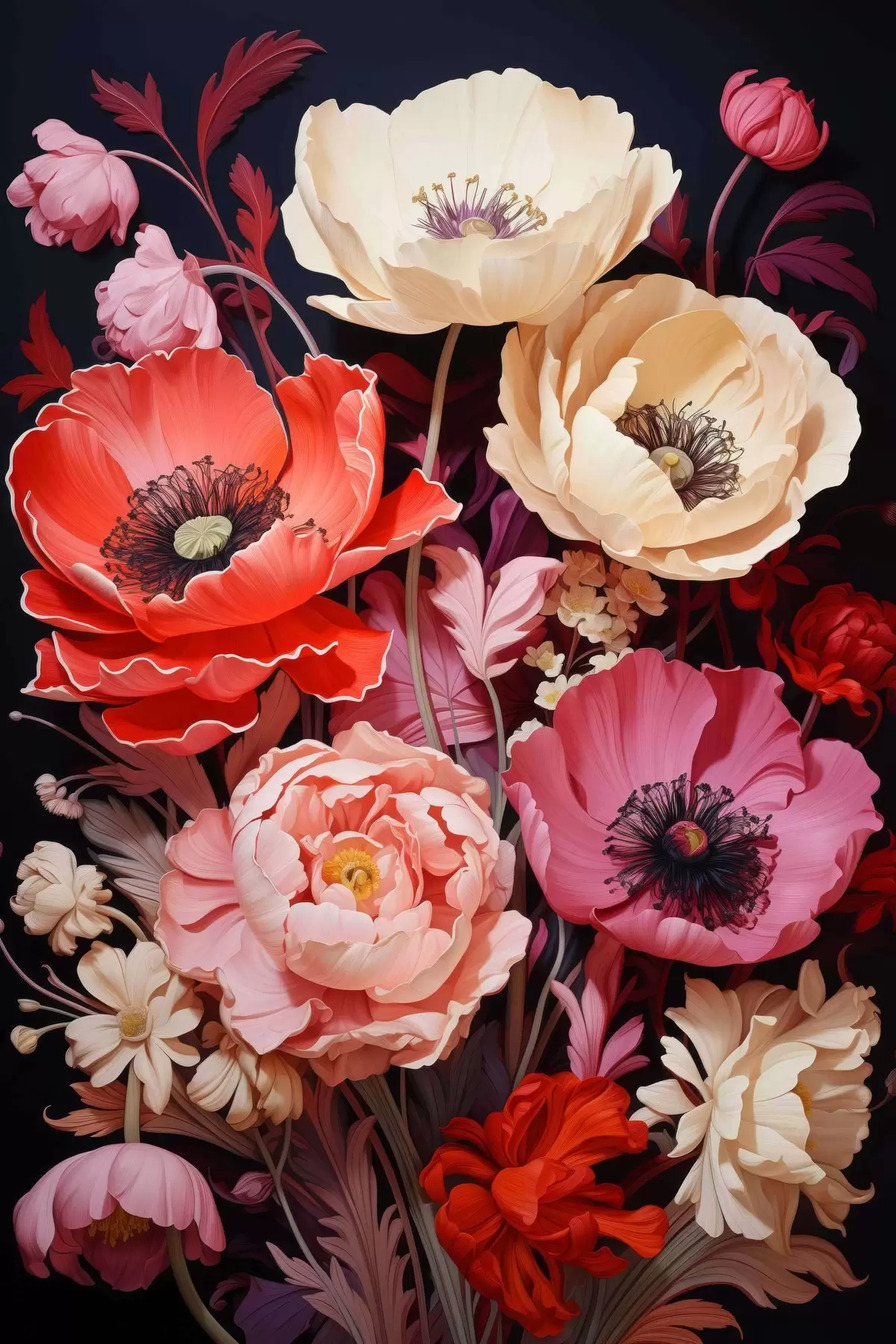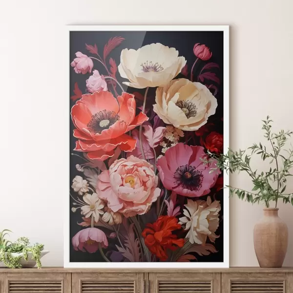 Poster Ramo de amapolas en tonos rosas y rojos f45600