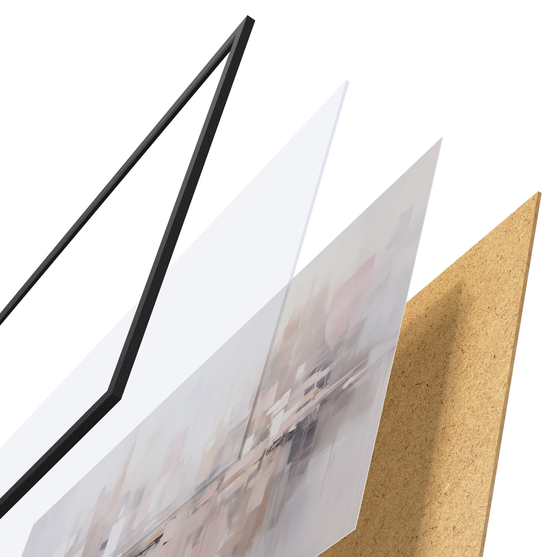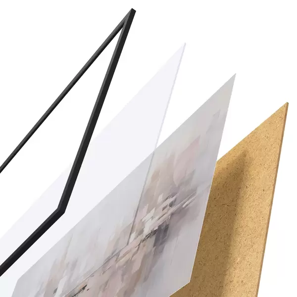 El póster consta de marco, plexiglás, imagen impresa y soporte de aglomerado. El póster puede colgarse inmediatamente en la pared gracias a los soportes de la parte posterior.