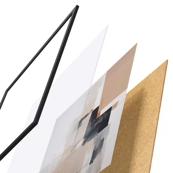 El póster consta de marco, plexiglás, imagen impresa y soporte de aglomerado. El póster puede colgarse inmediatamente en la pared gracias a los soportes de la parte posterior.