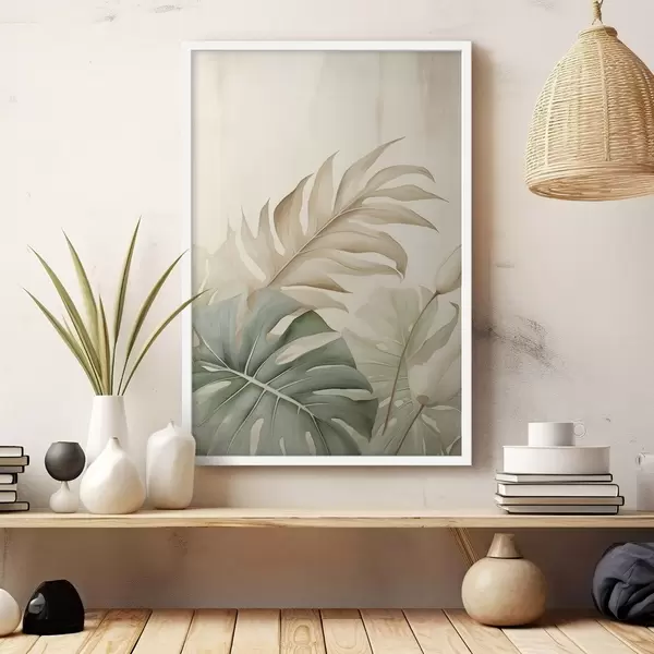 Poster Hojas tropicales sobre fondo claro Nr f45617