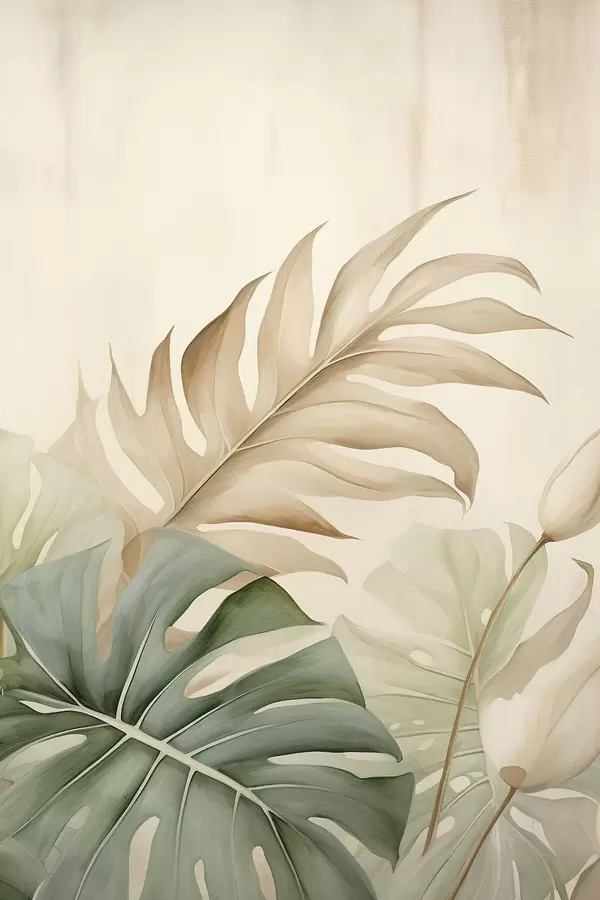 Poster Hojas tropicales sobre fondo claro Nr f45617