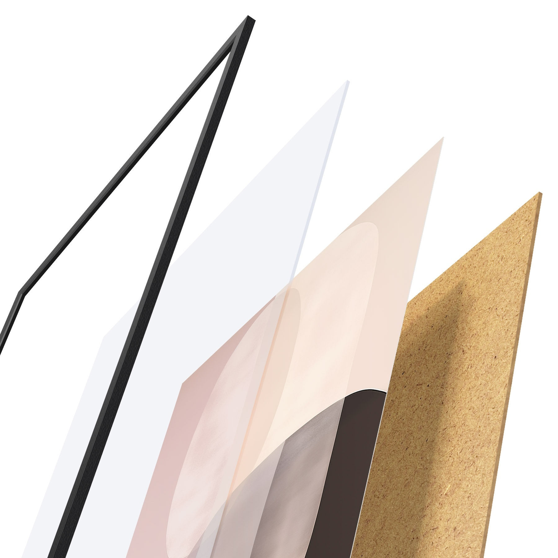 El póster consta de marco, plexiglás, imagen impresa y soporte de aglomerado. El póster puede colgarse inmediatamente en la pared gracias a los soportes de la parte posterior.