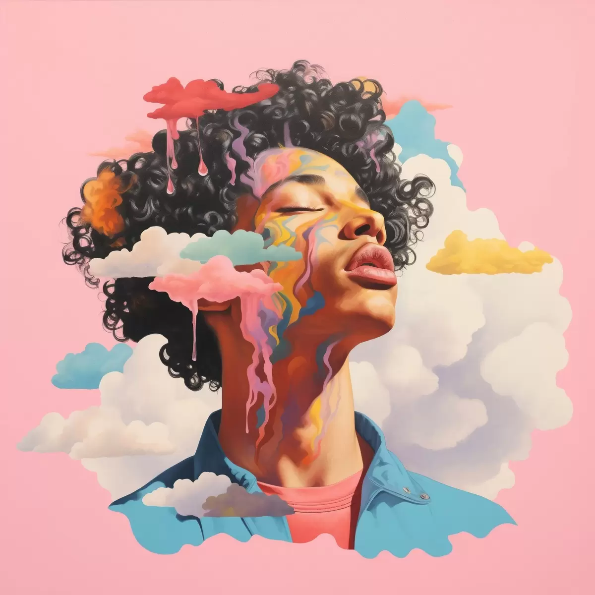 Poster Soñador en las nubes en estilo acuarela f45636