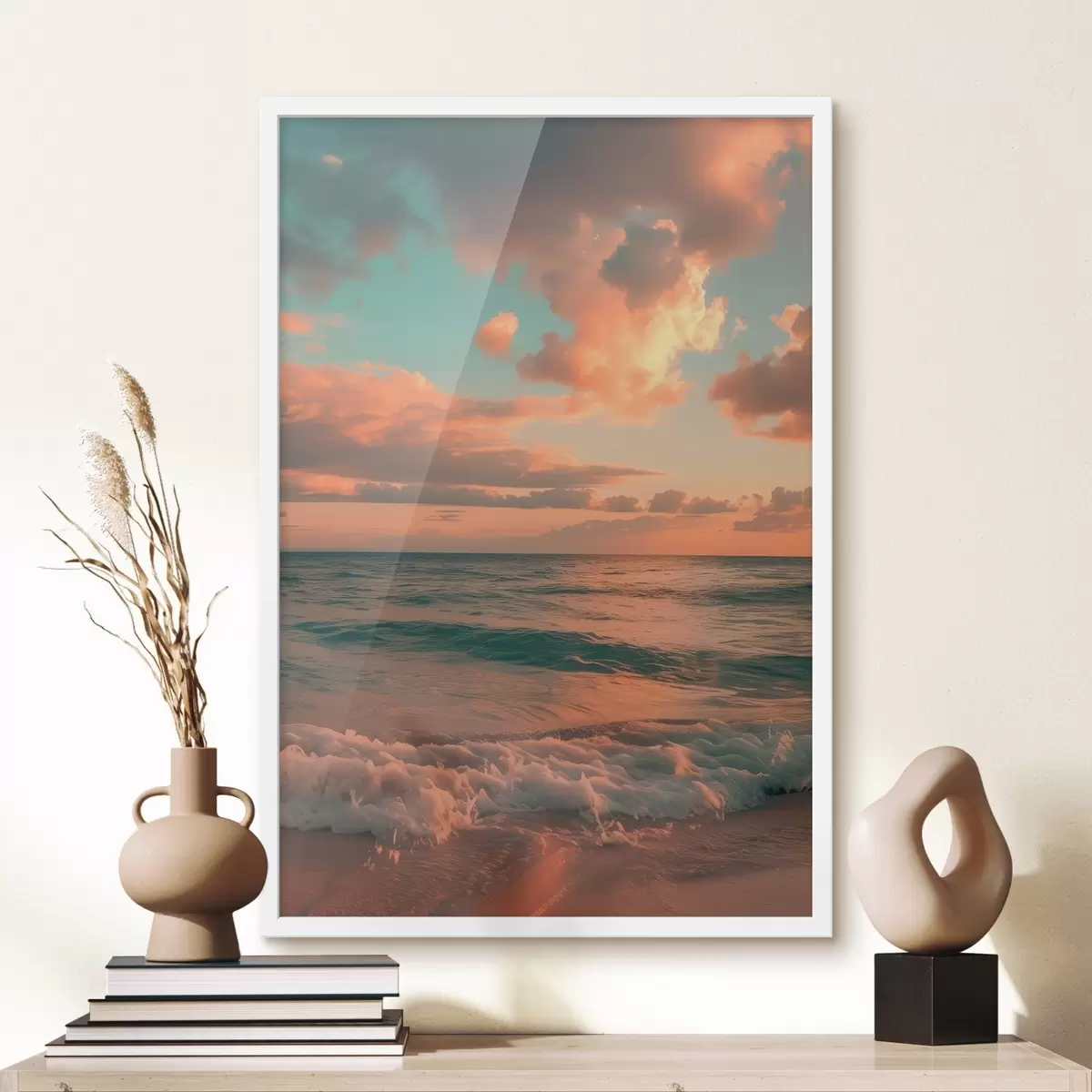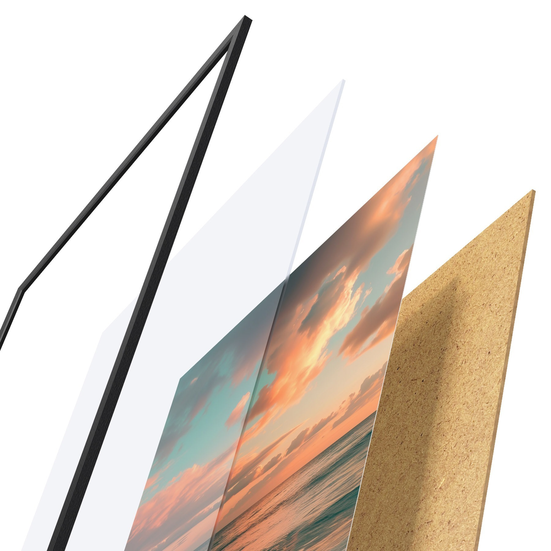 El póster consta de marco, plexiglás, imagen impresa y soporte de aglomerado. El póster puede colgarse inmediatamente en la pared gracias a los soportes de la parte posterior.