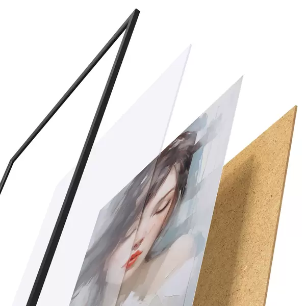 El póster consta de marco, plexiglás, imagen impresa y soporte de aglomerado. El póster puede colgarse inmediatamente en la pared gracias a los soportes de la parte posterior.
