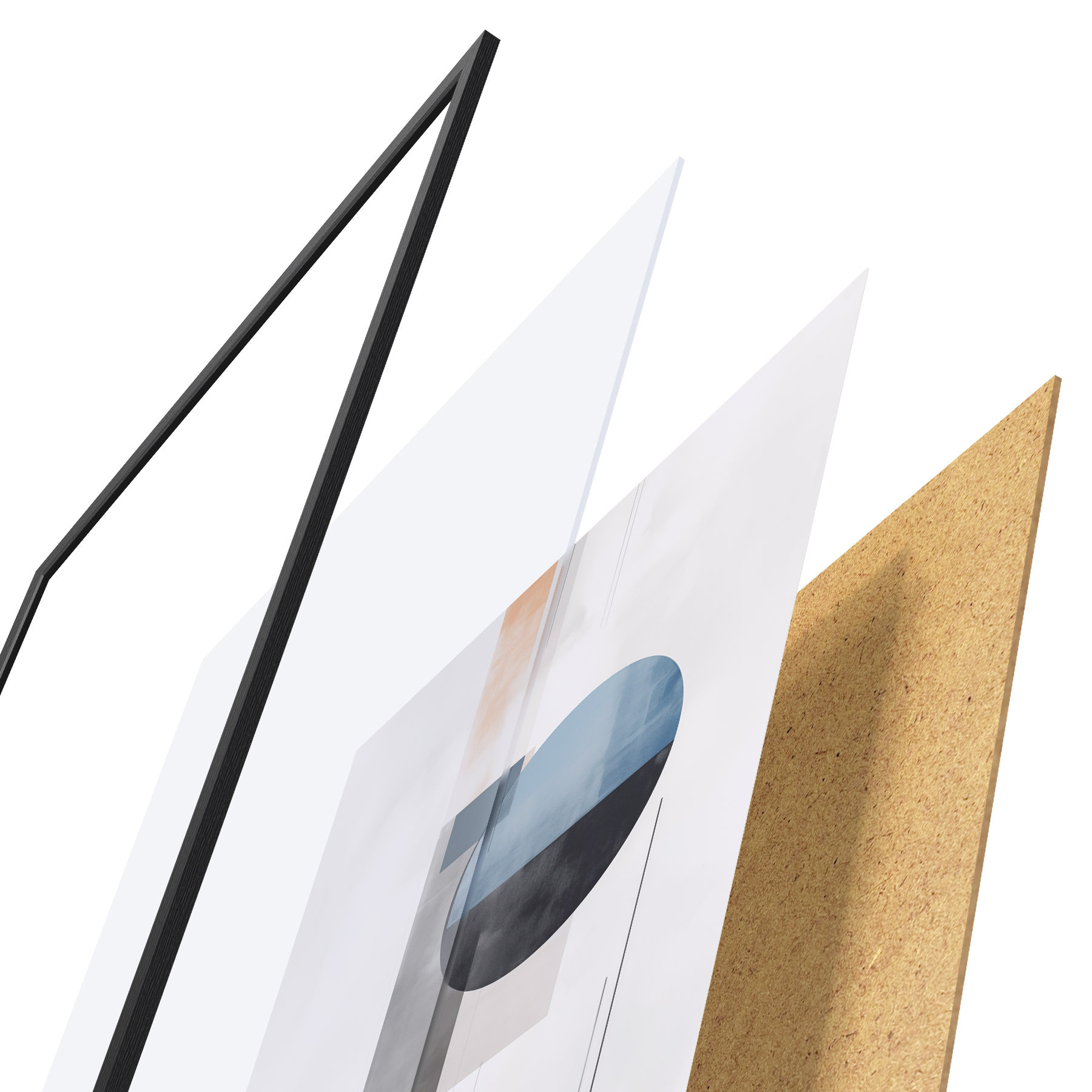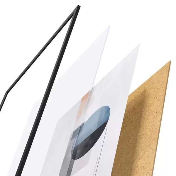 El póster consta de marco, plexiglás, imagen impresa y soporte de aglomerado. El póster puede colgarse inmediatamente en la pared gracias a los soportes de la parte posterior.