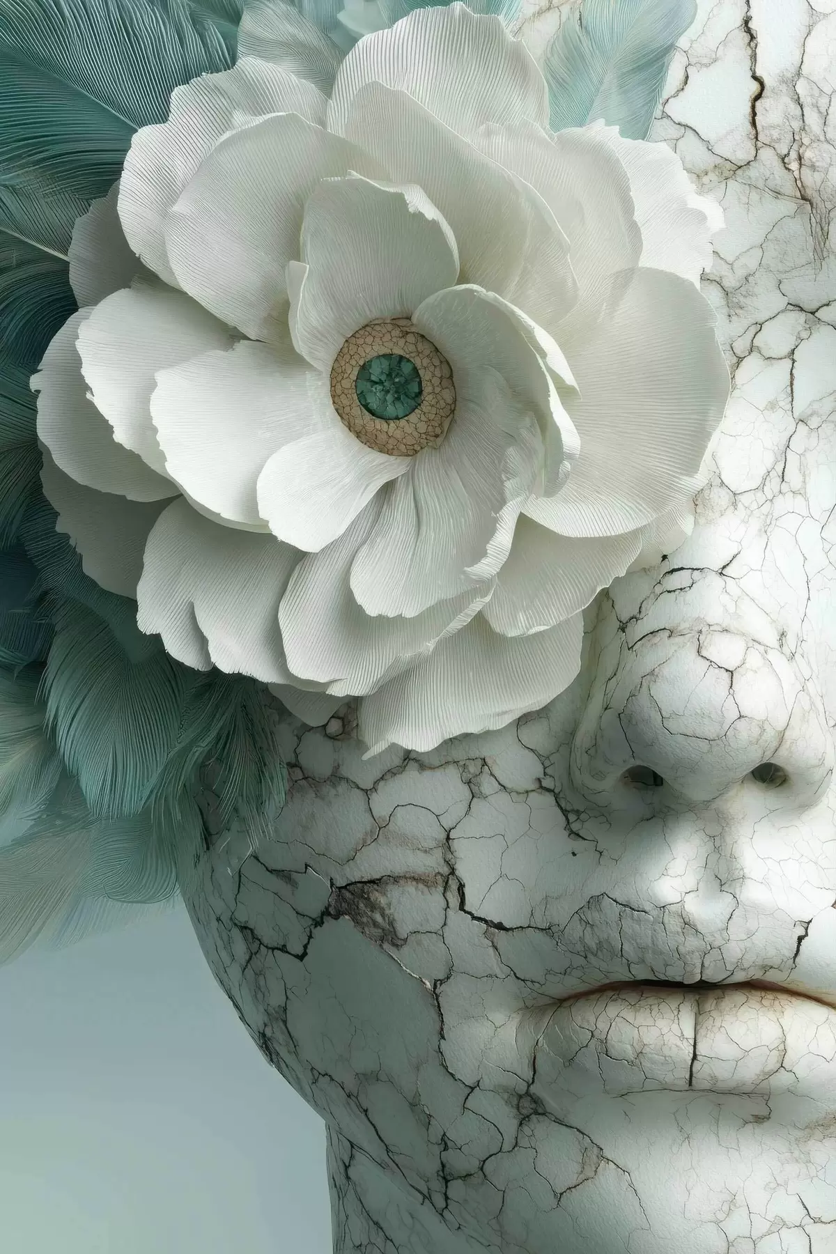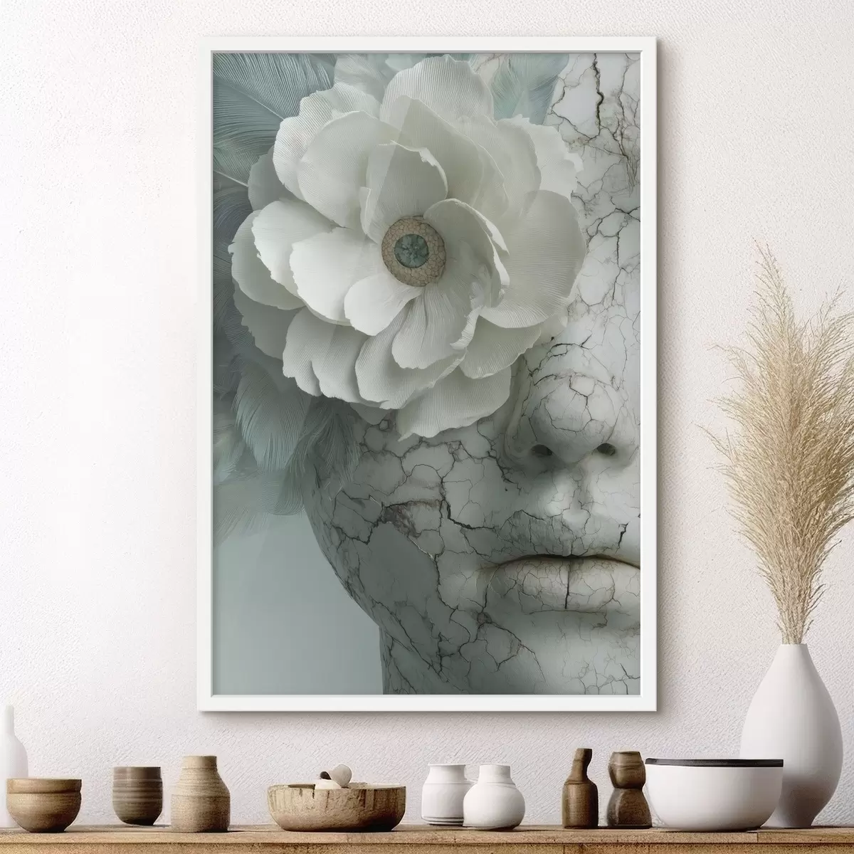 Poster rostro de mármol de una niña con una flor Nr f45709