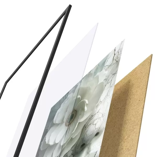El póster consta de marco, plexiglás, imagen impresa y soporte de aglomerado. El póster puede colgarse inmediatamente en la pared gracias a los soportes de la parte posterior.