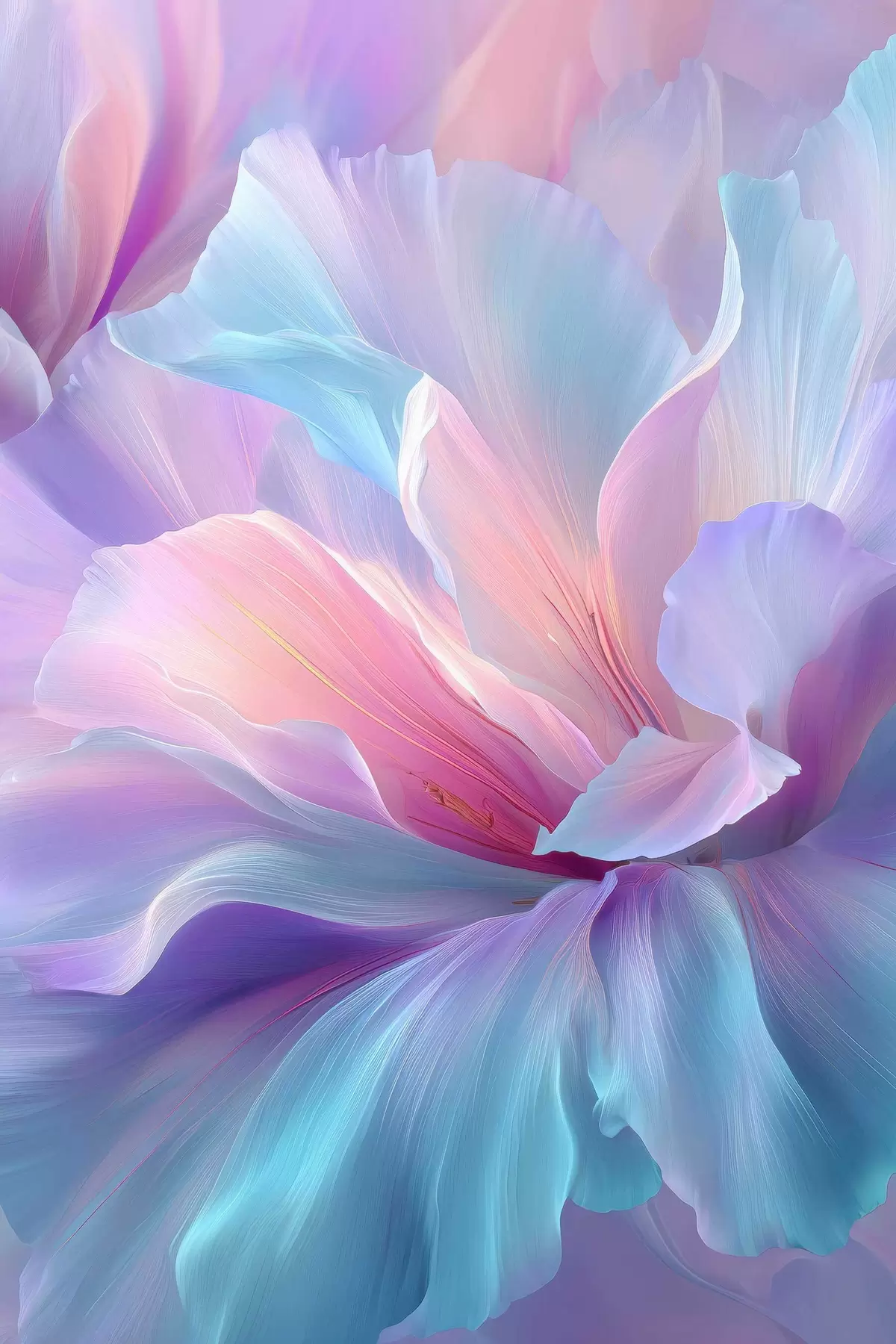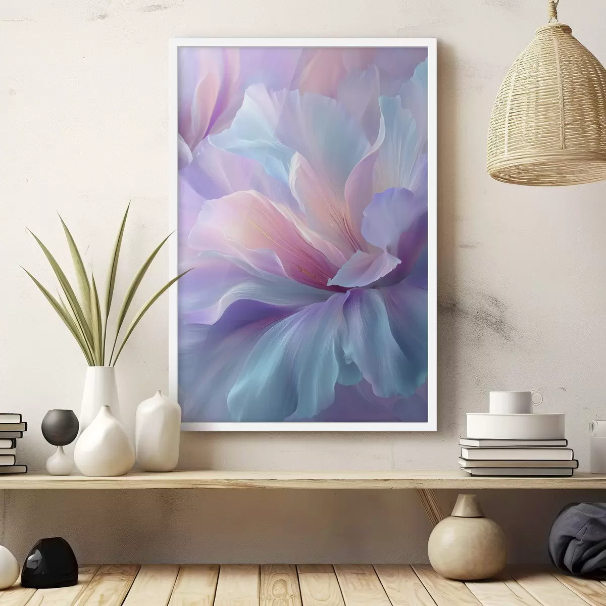 Poster una delicada flor fantástica con pétalos en tonos morados, azules y rosados. Nr f45710