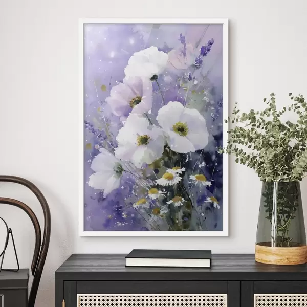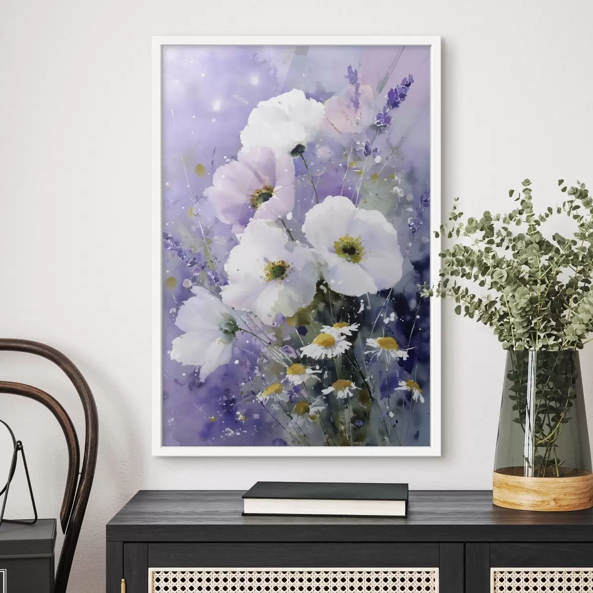 Poster ramo de acuarelas en tonos lila y blanco Nr f45719