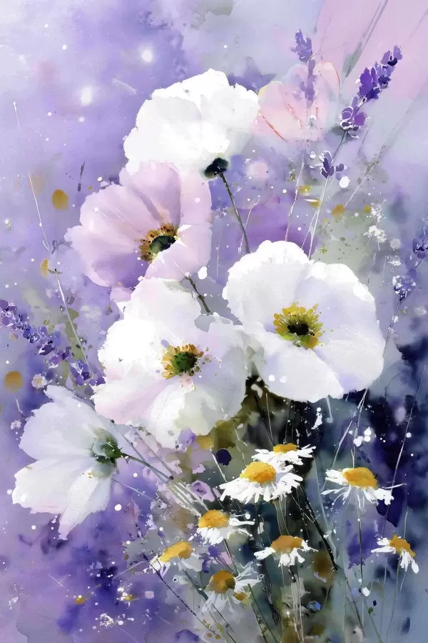 Poster ramo de acuarelas en tonos lila y blanco Nr f45719