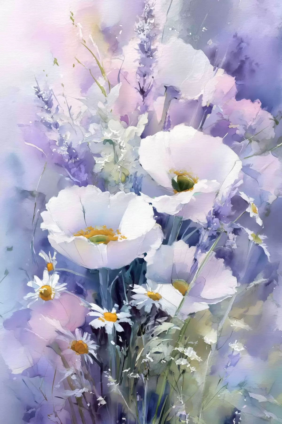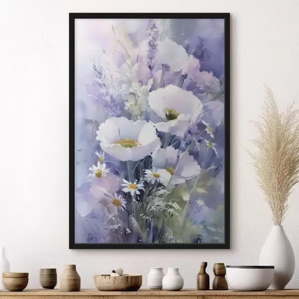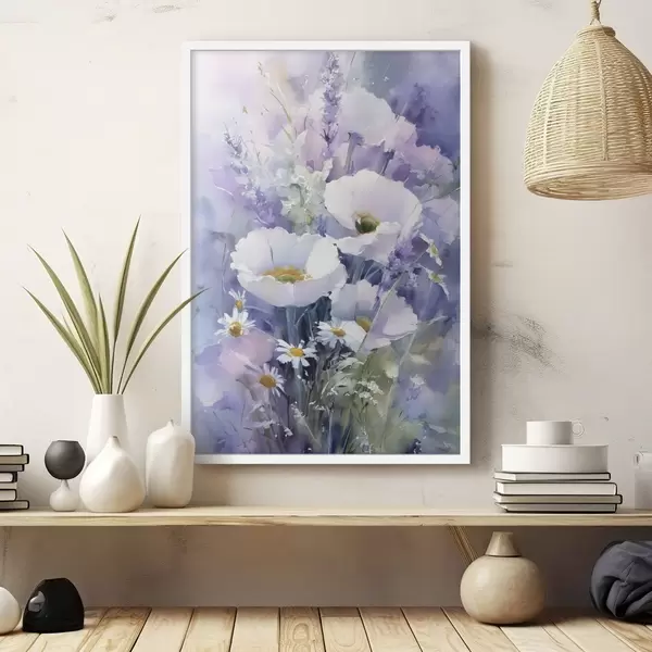 Poster ramo de acuarelas en tonos lila y blanco Nr f45720