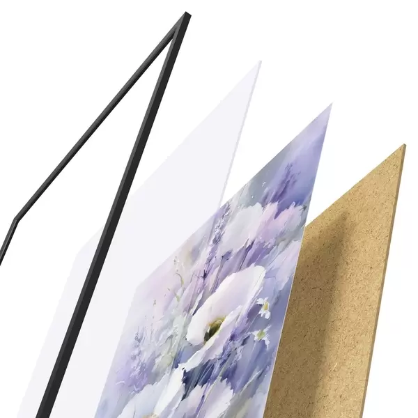El póster consta de marco, plexiglás, imagen impresa y soporte de aglomerado. El póster puede colgarse inmediatamente en la pared gracias a los soportes de la parte posterior.