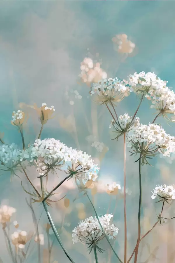 Poster Flores de Queen Anne's Lace en estilo acuarela sobre fondo azul Nr f45721