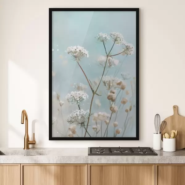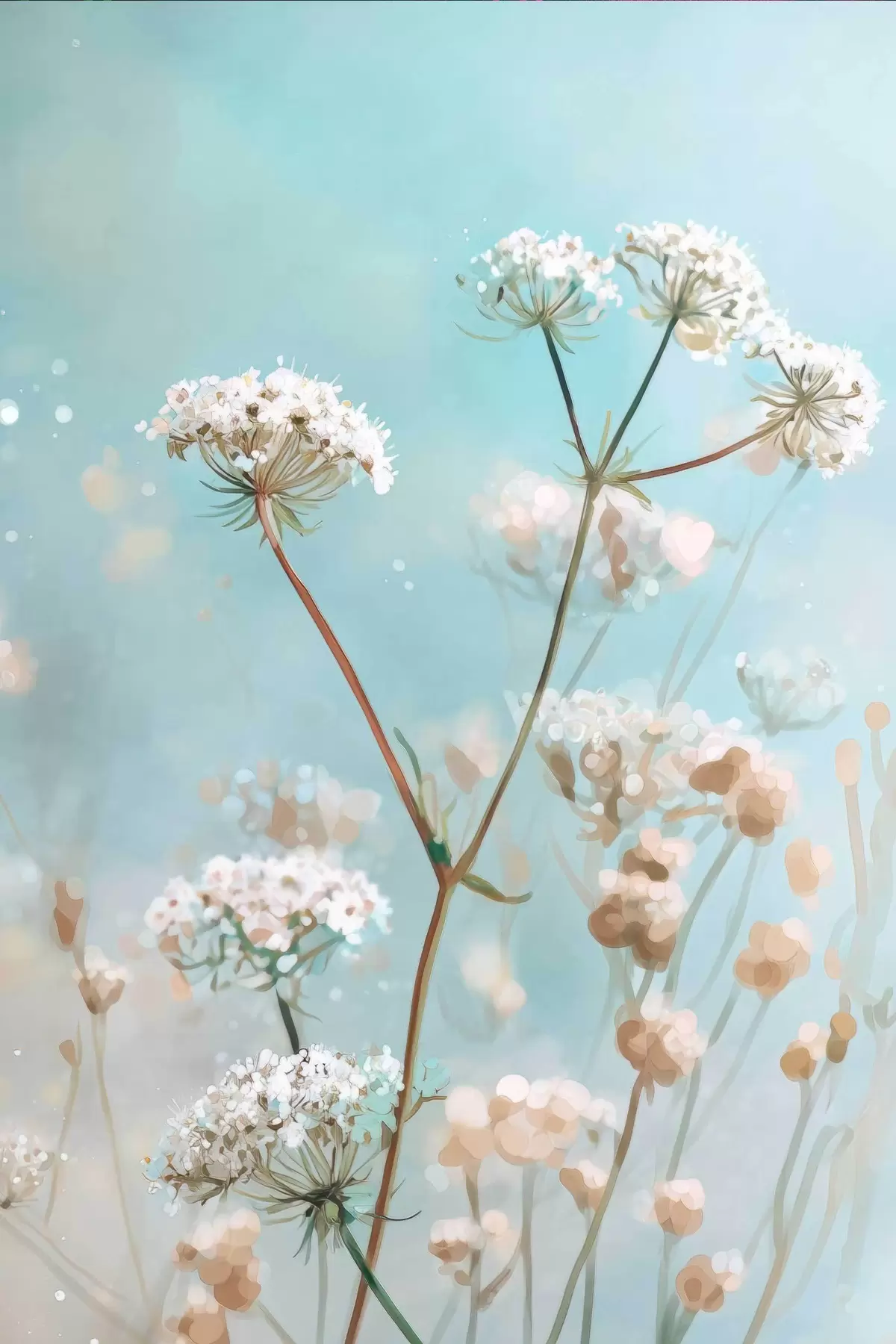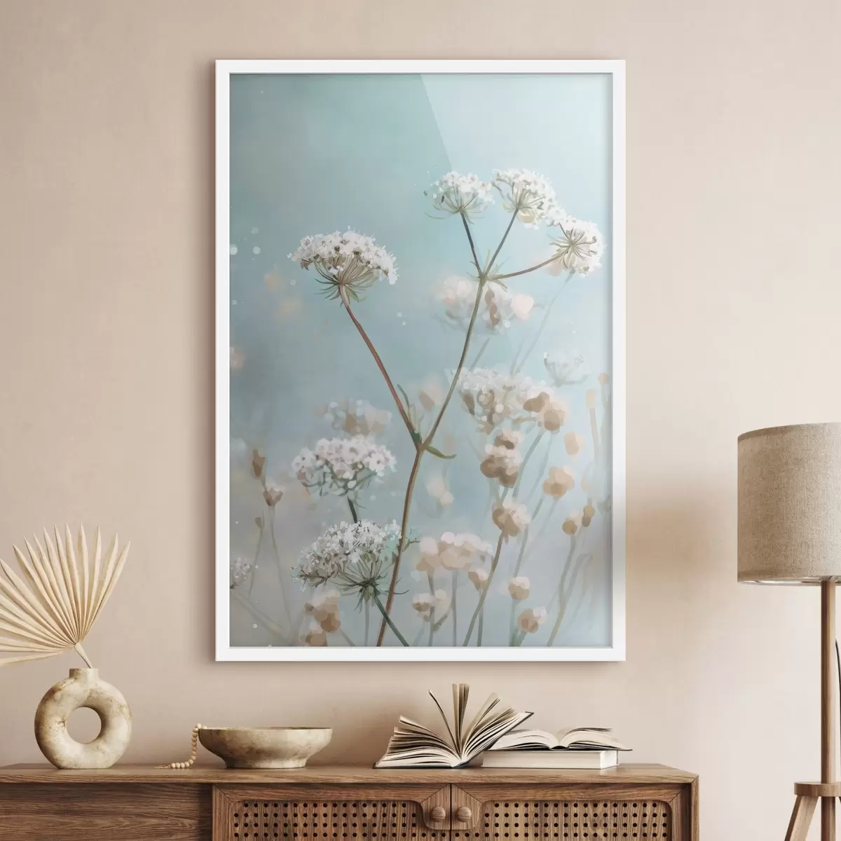Poster Flores de Queen Anne's Lace en estilo acuarela sobre fondo azul Nr f45722