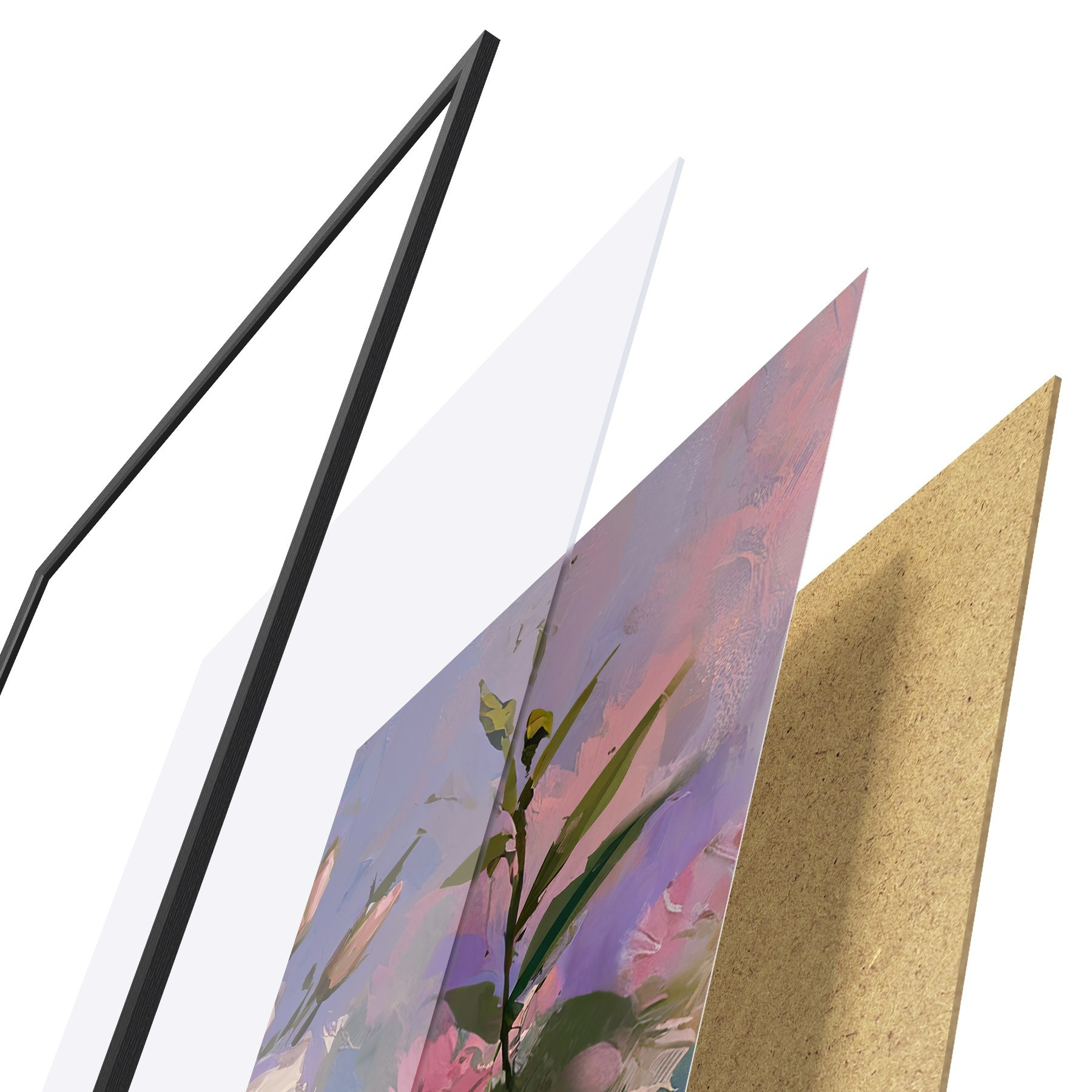 El póster consta de marco, plexiglás, imagen impresa y soporte de aglomerado. El póster puede colgarse inmediatamente en la pared gracias a los soportes de la parte posterior.